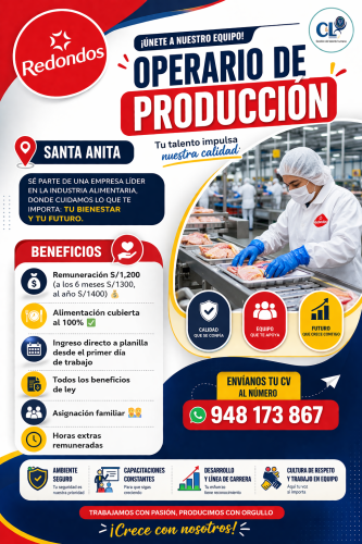 Disponibilidad para trabajar en 2 turnos rotativos.